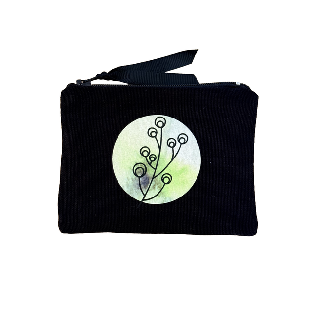Porte Monnaie Noir coton doublé d'entoilage noir, décoration en Flex.